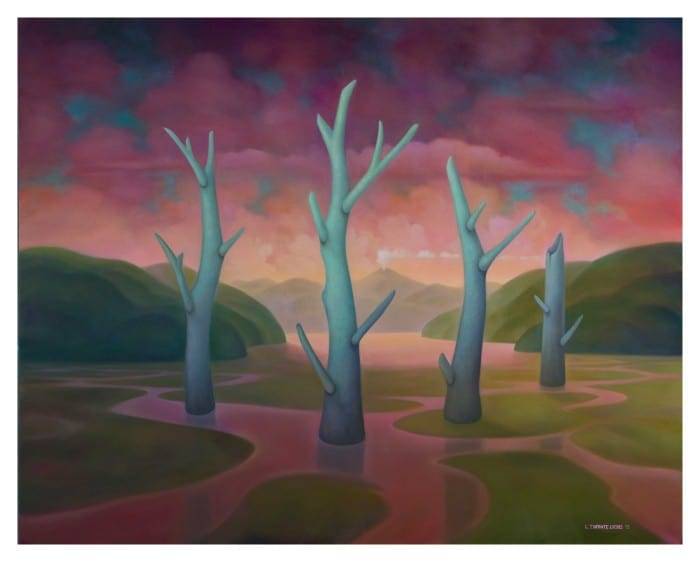 “Communities, Disaster and Change” is a traveling exhibition coordinated by the Valdez Museum and Historical Archive, in Valdez, Alaska. Framed by the 50-year anniversary of the devastating Good Friday Earthquake that struck Alaska on March 27, 1964, the exhibit features 28 of Alaska’s finest artists from around the state. Each artists has submitted one piece, although some works contain multiple elements, such as diptychs and sculptural arrangements, that address the theme of natural disasters’ effects on their communities.