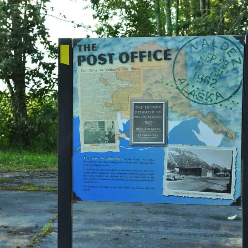 Four successive waves advanced into Old Town after the earthquake. The fourth and final wave brought water one third of the way into town to a depth of two feet near Hobart Street where the post office sits. A new post office was built in New Valdez.