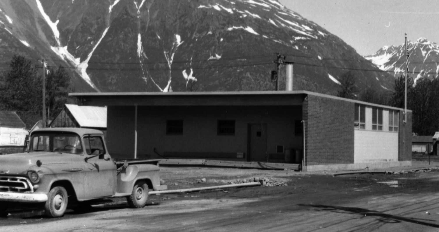 Legate’s Taxi Service, a one story concrete block addition on the south side of the building constructed using neither grout nor rebar supports, didn’t fare well in the 1964 Earthquake. The quake caused a submerged landslide along the shoreline that displaced considerable water and brought about a local tsunami and series of four successive waves. These bounced off the opposite end of the bay like water sloshing in a bathtub, and flowed into Valdez.