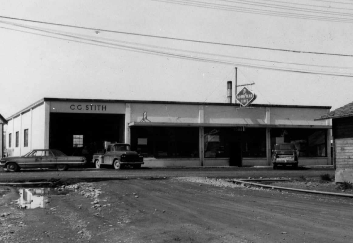 A Ford dealership located at 503 McKinley Street until 1960, Stith’s original cement foundation is still in evidence. A new owner closed the auto business and re-purposed the edifice to sell hardware and building materials. A three-bedroom residence was located adjacent to the store on the east side.