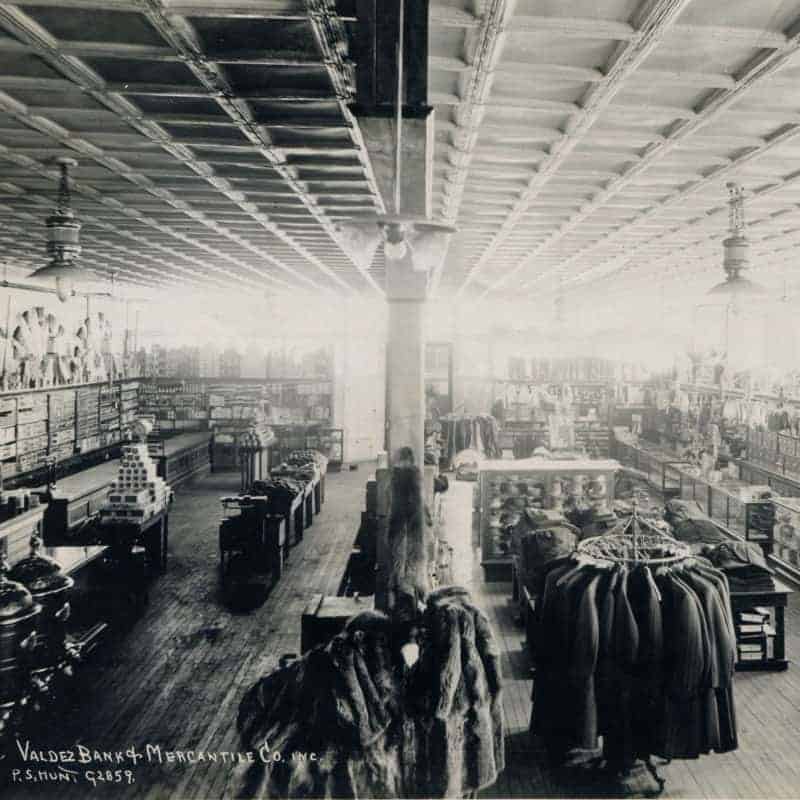 In 1952 Max Wells purchased and expanded the Merrill Mercantile Company. Sometimes, called the “Sears” of Valdez, Wells sold essentials from lumber to toys to washing machines on the ground floor. Old Towners recall him weighing new born Valdez babies in the nail scoop before the hospital was built, too.
