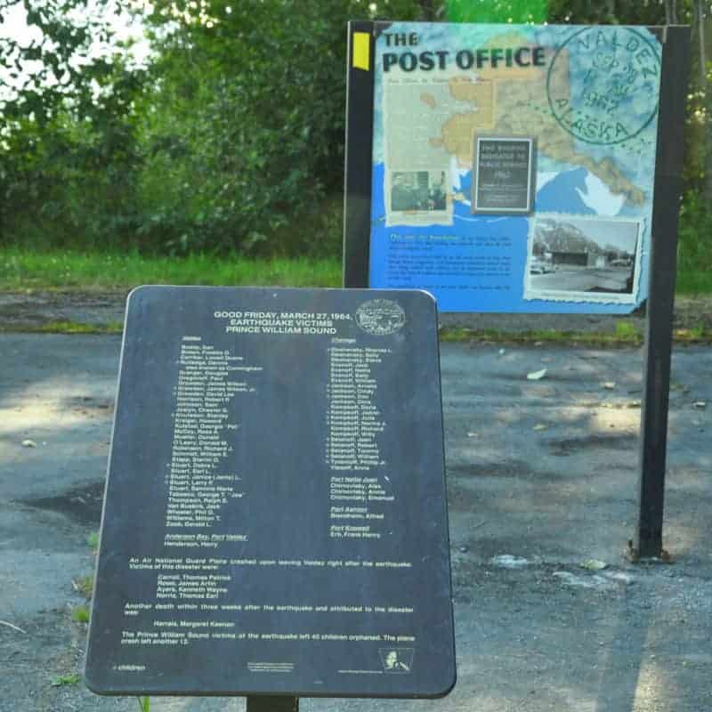 The intersection of Alaska Avenue and Richardson Highway signifies the main route into the original Valdez town site and beginning of the walking tour. Little remains in evidence of the town after the 1964 Earthquake, the second largest recorded in history at 9.2. Stops along the tour were chosen for ease of access and to help bring the story of this community to life.